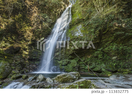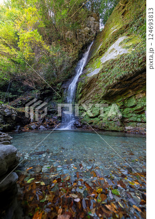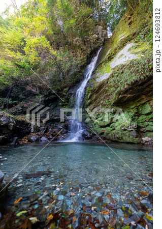 透明度が高い晩秋の琵琶の滝の情景@徳島