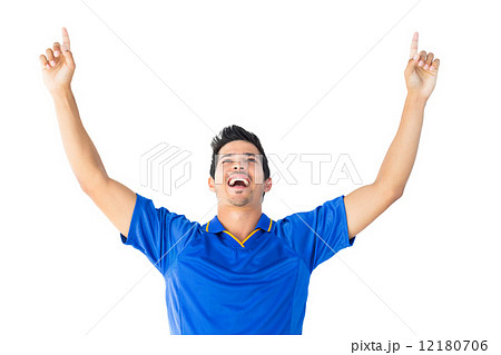 Happy football player in blue celebrating