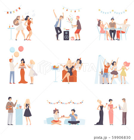 Holidays And Events, People Having Fun At Party, Singing, Congratulating Each Other Vector