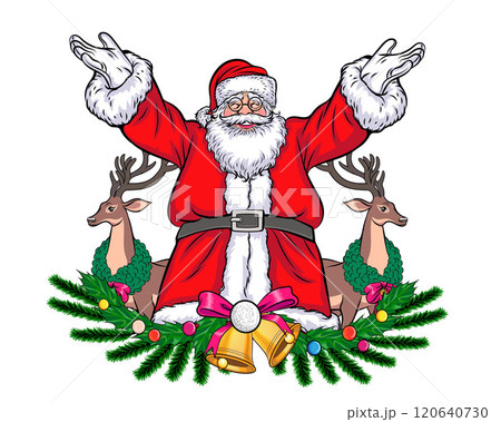 merry christmas santa snowman reindeer elf with Christmas girl in red dress in pop art comic style