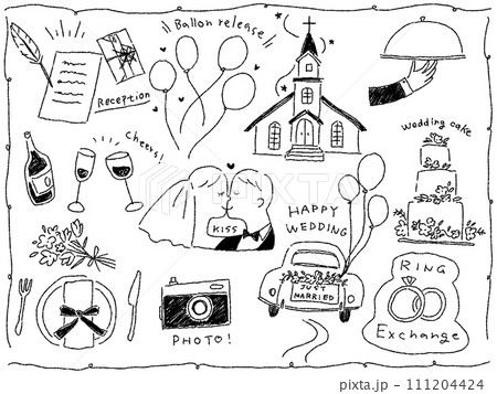 タイムスケジュール用イラスト、チャペル、ウエディングアイテム、線画