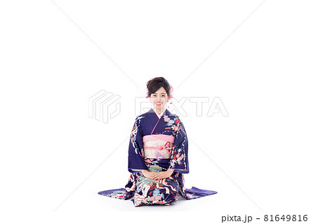 振り袖を着て挨拶をする女性 年賀状イメージ