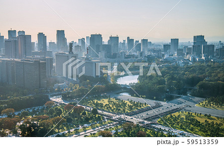 日本の東京都市景観 霞が関の官庁街などを望む(奥に富士山)=2019年11月10日撮影