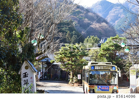 厚木市七沢温泉郷 広沢寺温泉バス停と神奈中バスと玉翠楼