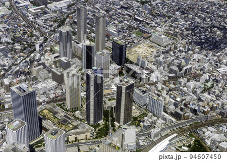武蔵小杉の高層ビル群を空撮