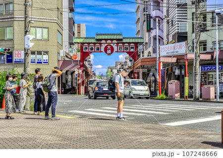 川崎市の都市風景 川崎大師 表参道 厄除門