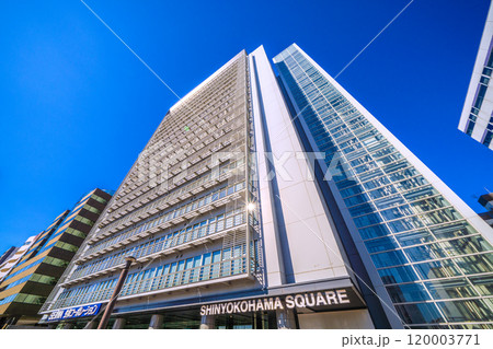 日本の横浜都市景観 新横浜駅・「新横浜ヴィスタウォーク」前の新横浜スクエアビルなどを望む=7日