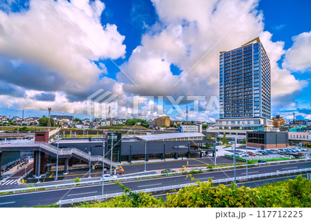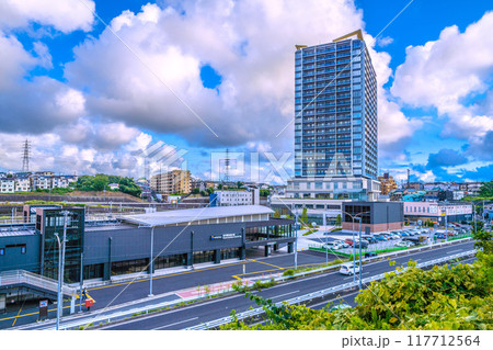 日本の横浜都市景観 8月。SOTETSU 羽沢横浜国大駅を望む