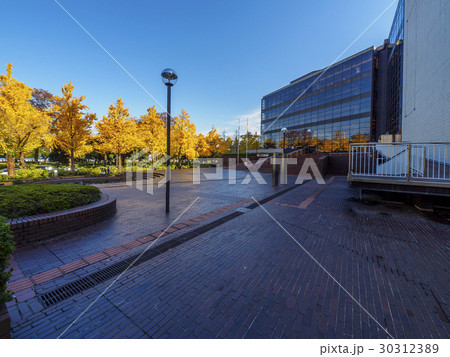 神奈川県立県民ホール前の明るい銀杏の黄葉