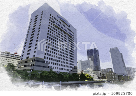 水彩画風 横浜みなとみらい 神奈川県警察本部 神奈川県横浜市