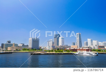 日本の横浜都市景観 横浜港などを望む(画面中央は、ザ・タワー横浜北仲)