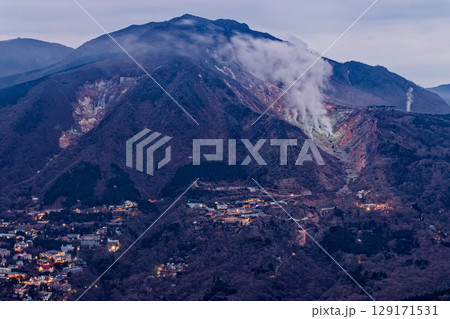 箱根・明神ヶ岳から見る夜明けの大涌谷