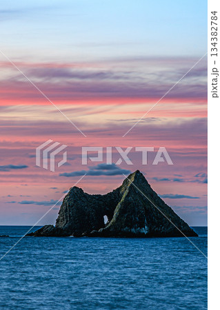 黄昏の空に映える積丹半島・窓岩