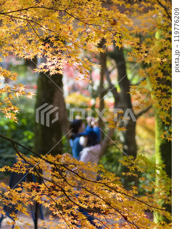 神戸・瑞宝寺公園の紅葉と、スマホで写真を撮る観光客 / Zuihoji Park, Japan