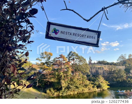 【兵庫】ネスタリゾート神戸の木製看板と秋景色