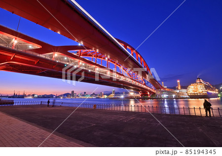 神戸大橋とクルーズ客船の夜景