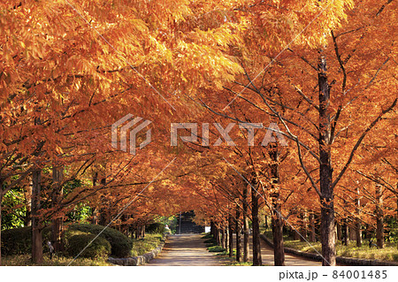 【兵庫県】紅葉した神戸市立森林植物公園のメタセコイア並木