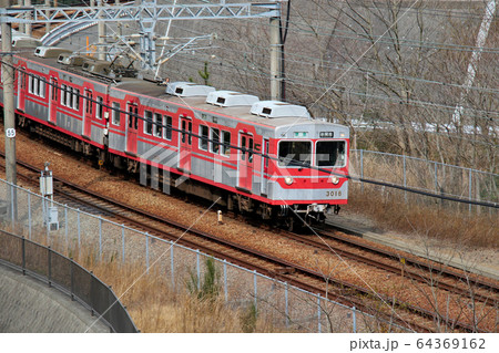 菊水山トンネルに向かって快走する神戸電鉄3000系3017編成車両 アップ