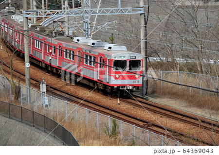 菊水山トンネルに向かって快走する神戸電鉄6000系6001編成車両 少しロングで