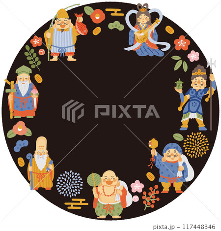 シンプルでかわいい七福神イラストの円形フレーム