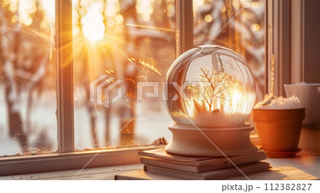 AI-generated content. A defocused background with an abstract snowglobe in eve night