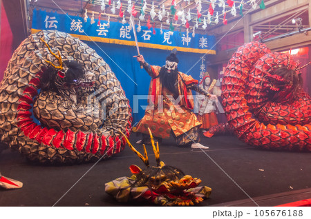 石見神楽 浜田市三宮神社の夜神楽 スサノオノミコト大蛇退治