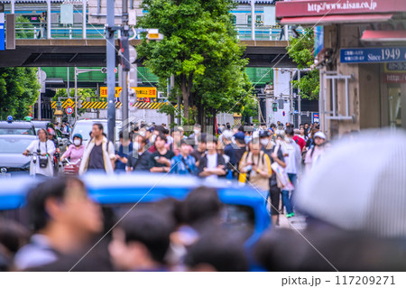 日本の東京都市景観 インバウンド復活…外国人観光客らで賑わう秋葉原。奥に秋葉原駅や電車=22日