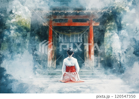 神社で祈る巫女の美しさ|和風アートで感じる日本の伝統
