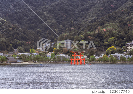 【広島宮島 宮島口JR西日本宮島フェリーからの大鳥居】