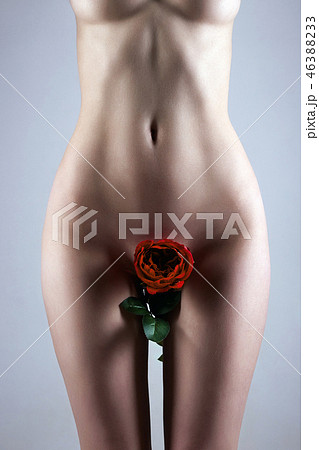 Nude Woman with Flower. Naked Girl with red rose
