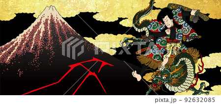 山下白雨&金の雲&龍にのっている歌舞伎役者 ロングバージョン