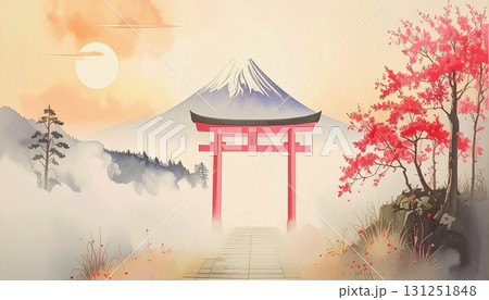 富士山と鳥居,Generative AI,AI画像