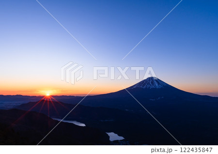 (山梨県)御坂山地・王岳から見る御来光と富士山
