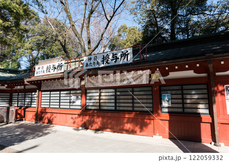 大國魂神社の授与所 冬晴れの青空 東京都府中市宮町