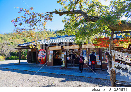 大國魂神社の授与所 冬晴れの青空 東京都府中市宮町
