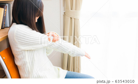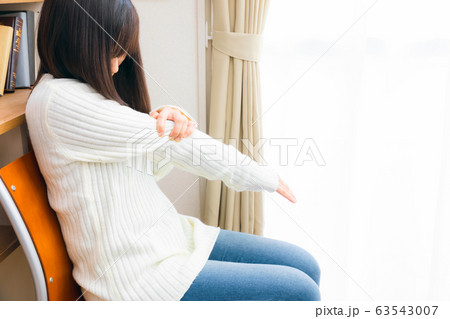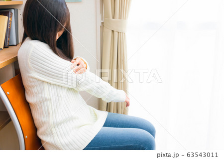 腕をさする女性 痛み 怠い 不定愁訴 予防接種によるもの等