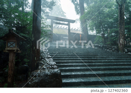 大雨の伊勢神宮 神聖なパワースポット 外宮別宮 土宮