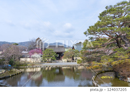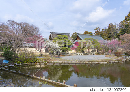 京都 梅宮大社 神楽殿から見える美しい梅の花