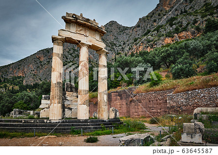 ruins Athina Pronaia temple in Ancient Delphi