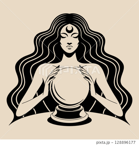 Mystic Fortune Teller Gazing into Crystal Ball