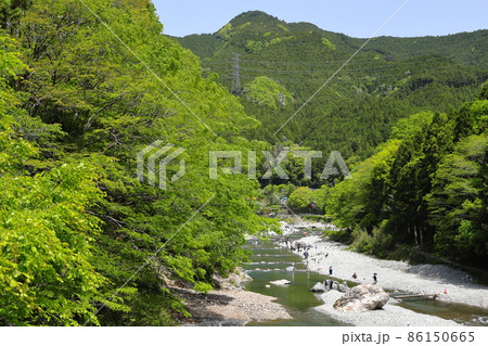 新緑の伊勢神宮 五十鈴川と新緑の風景 内宮の御手洗場 イメージ素材