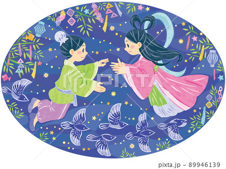 7月 七夕まつり 織姫と彦星 イラスト素材