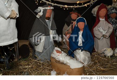 Christmas nativity scene Creche with Joseph Mary, Jesus and lamb
