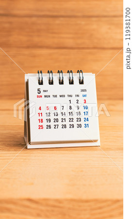 木目背景に2025年5月カレンダー