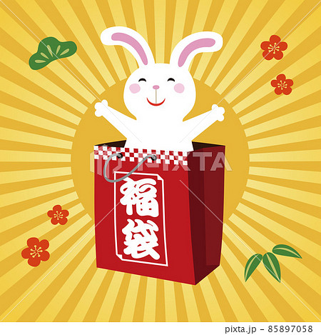 福袋から飛び出すうさぎのイラスト 年賀状素材