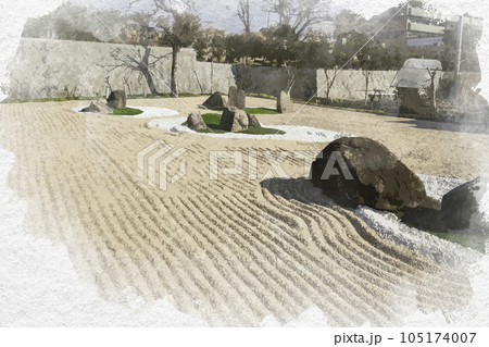 水彩画風 西条酒蔵通り 福寿院円通寺 白波枯山水 広島県東広島市