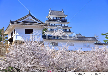 広島 桜満開の福山城 伏見櫓と天守(福山駅から)