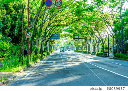 福岡市中央区大濠公園、護国神社横 国体道路沿い 新緑カラー