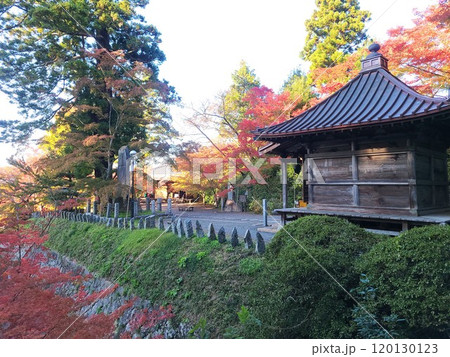 紅葉のピーク間近の文知摺観音(福島県福島市、11月上旬午後)