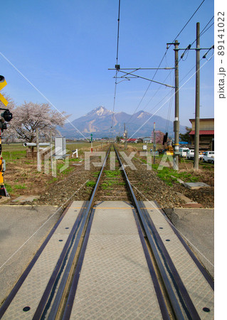 磐越西線と磐梯山(福島県・猪苗代町)